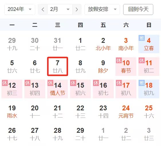 2024年2月18日(正月初九)正式上班。