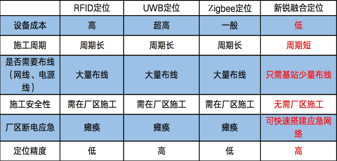 除了以上提及的四種常見技術,目前市場上還有幾十甚至上百種定位技術,比如說,新銳融合定位技術。新銳融合定位技術是由新銳科創依托行業優秀的無線通訊專家和數據安全開發團隊,融合物聯網、云計算、大數據、算法引擎等先進技術而來。新銳融合定位技術設備成本低,施工周期短,只需基站少量布線,不需要在廠房進行弱電施工;即便遇到如燃燒、爆炸類事故導致廠區斷電等突發事故,仍可快速搭建應急網絡,進行求救信息響應;更為重要的是,新銳融合定位技術定位精度非常高,用戶體驗非常好。