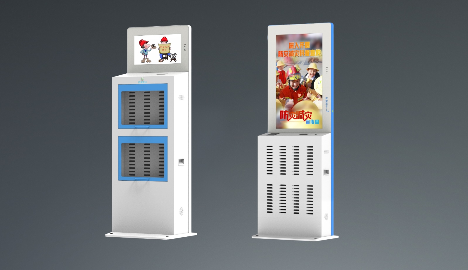 集人臉識別、發(fā)卡、考勤打卡、身份綁定、集中充電等功能于一體的智能發(fā)卡機充電柜。提高定位卡片的利用率,配備展示大屏,可自定義展示畫面,展示企業(yè)良好形象。